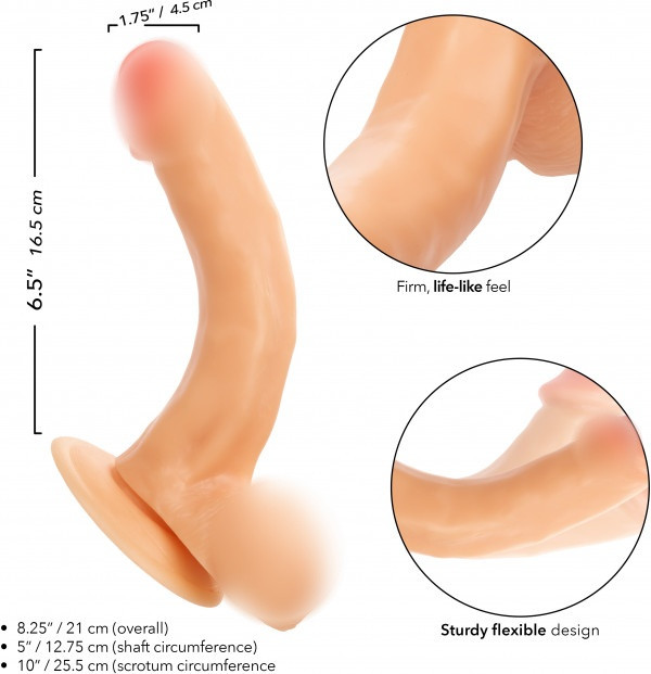 Ярко выраженная головка, изогнутый и рельефный ствол, мошонка, мощная присоска в основании - все это подарит настоящий фейерверк впечатлений!